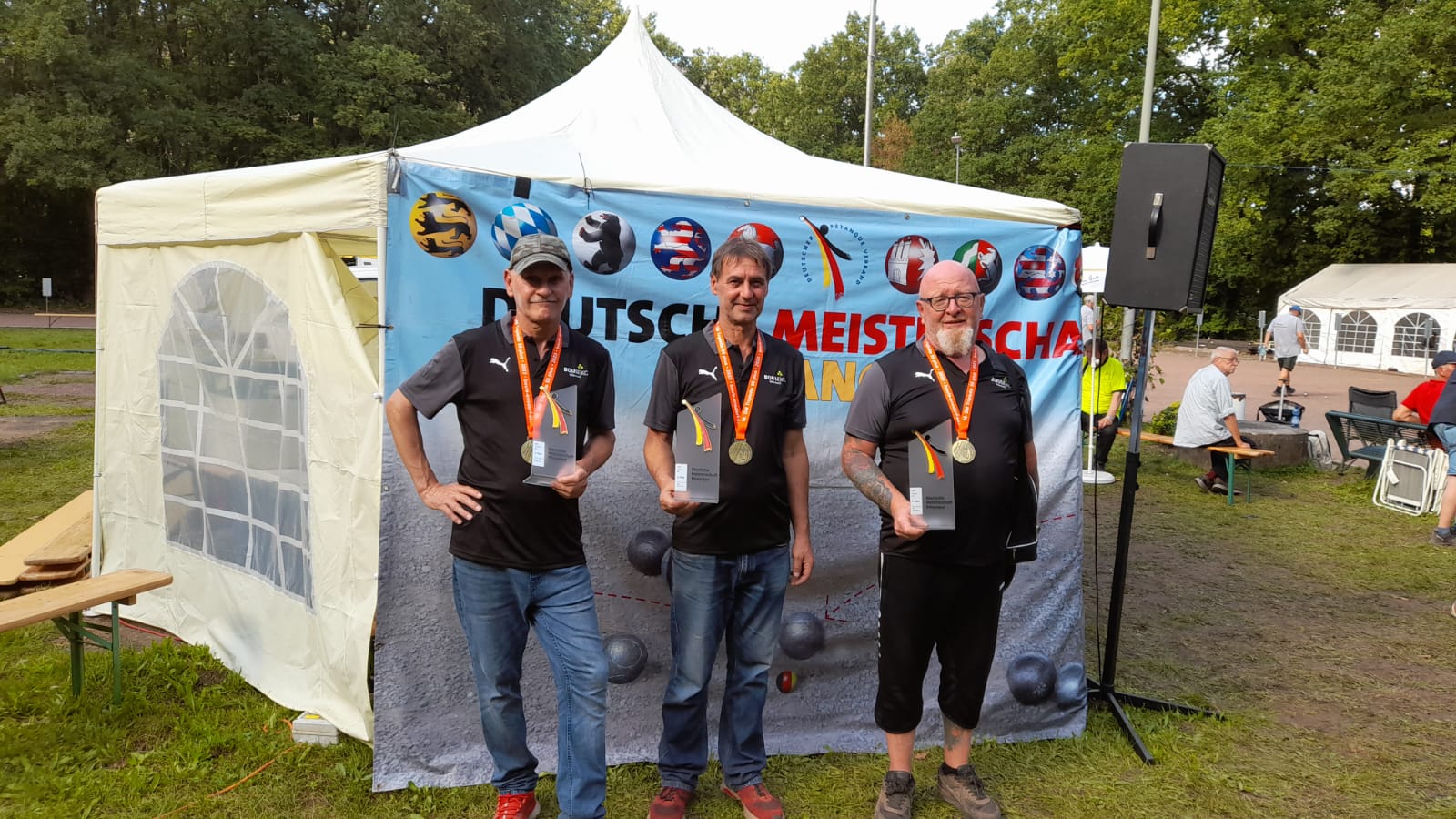 Die Deutsche Meisterschaft, ein Höhepunkt im Pétanque-Wettkampfsport, zieht jedes Jahr Spieler aus ganz Deutschland an, die sich dem Wettbewerb auf höchstem Niveau stellen wollen. In diesem Jahr war es ein besonderes Ereignis für das Team Saar05, Sylvain Haritonidis, Denis Kessler (beide Boule KG Sitterswald) und Mario Gallusser (PC Hanweiler) da sie den dritten Platz bei der Deutschen Meisterschaft Triplette 55+ erringen konnten. Einzig dem späteren Deutschen Meister unterlagen sie. 128 Teams waren am Start, darunter auch insgesamt 11 Saarteams.