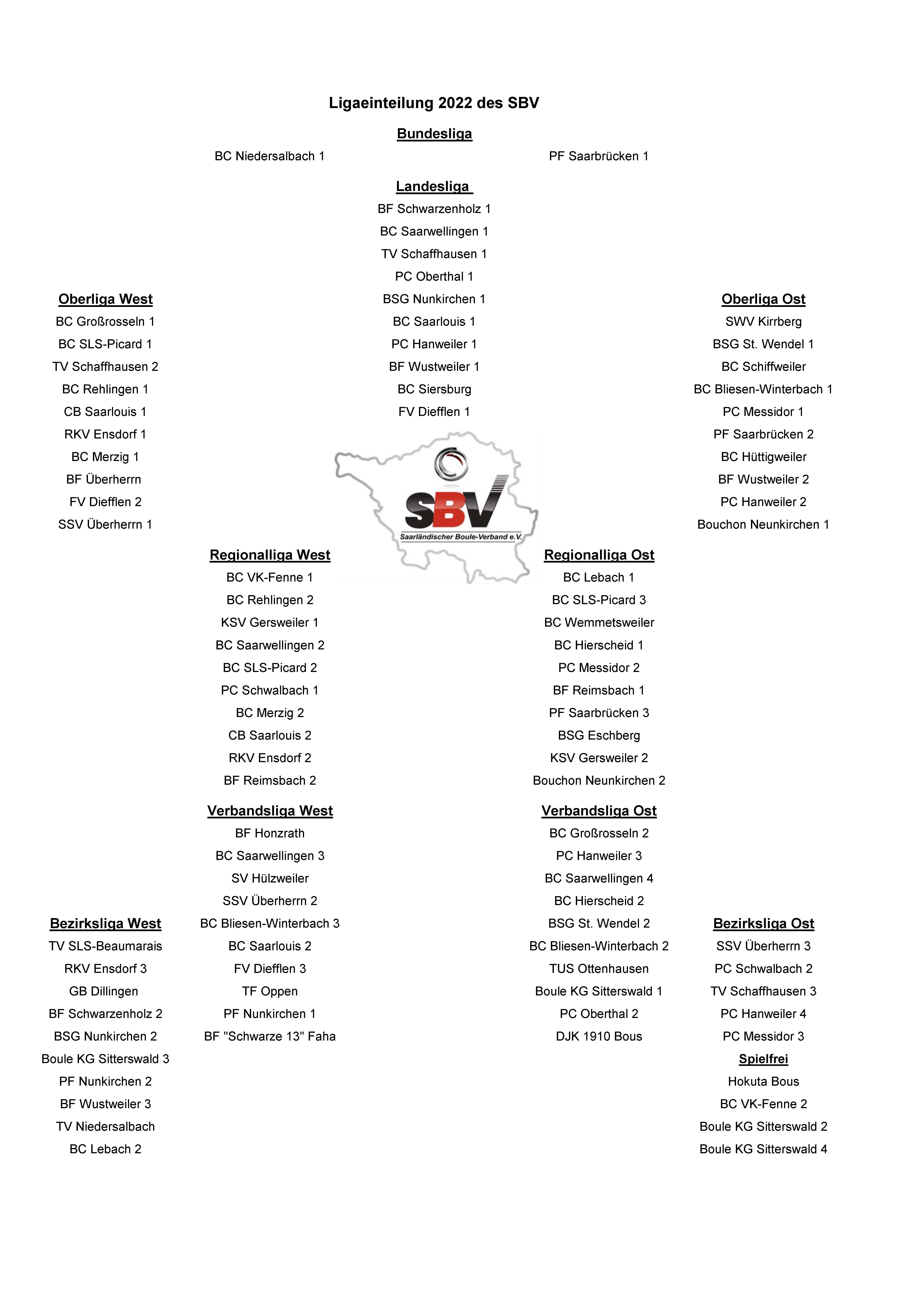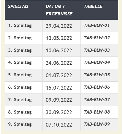Für die Ligaspiele sind die links stehenden Termine vom SBV festgesetzt worden.