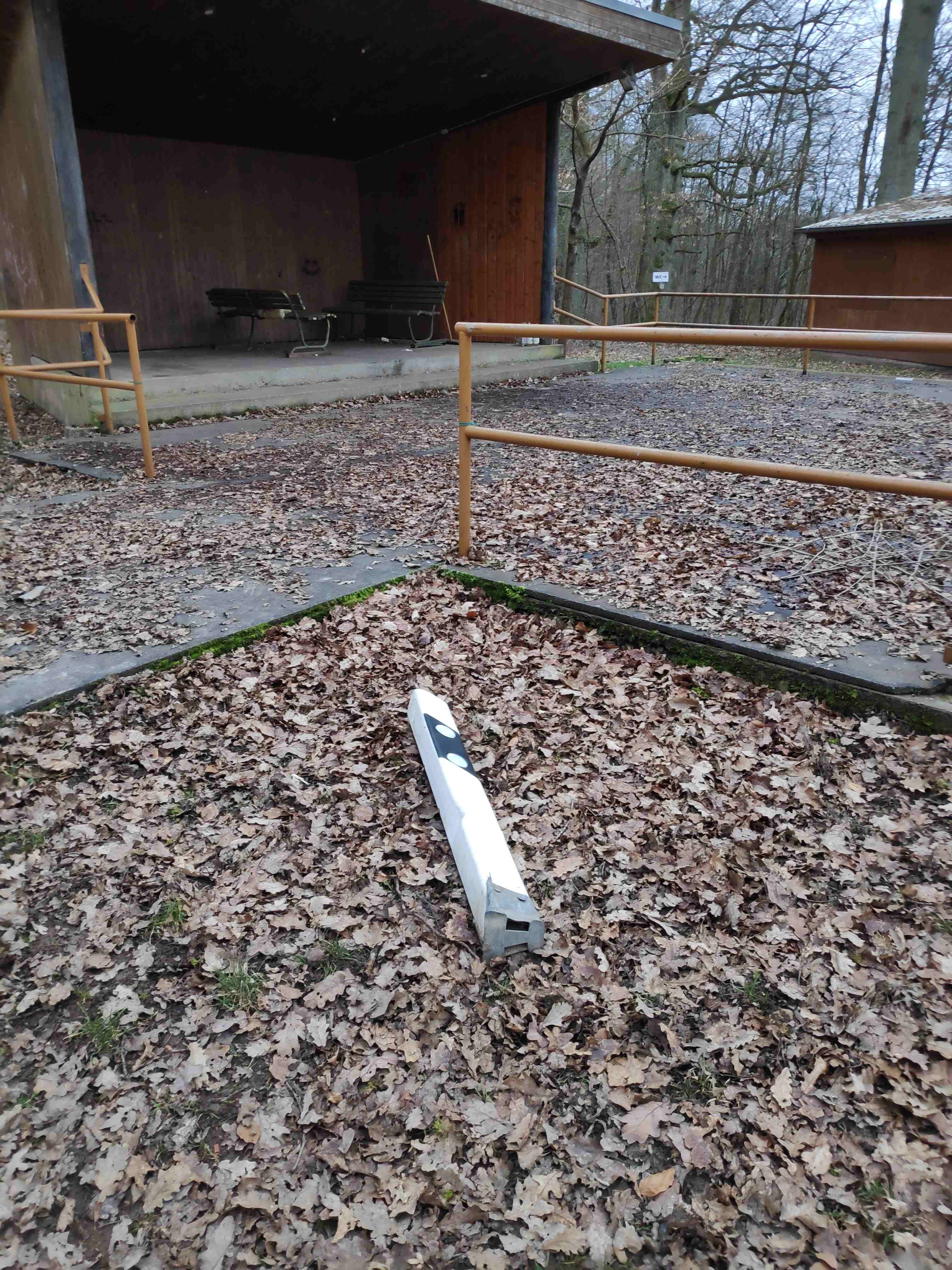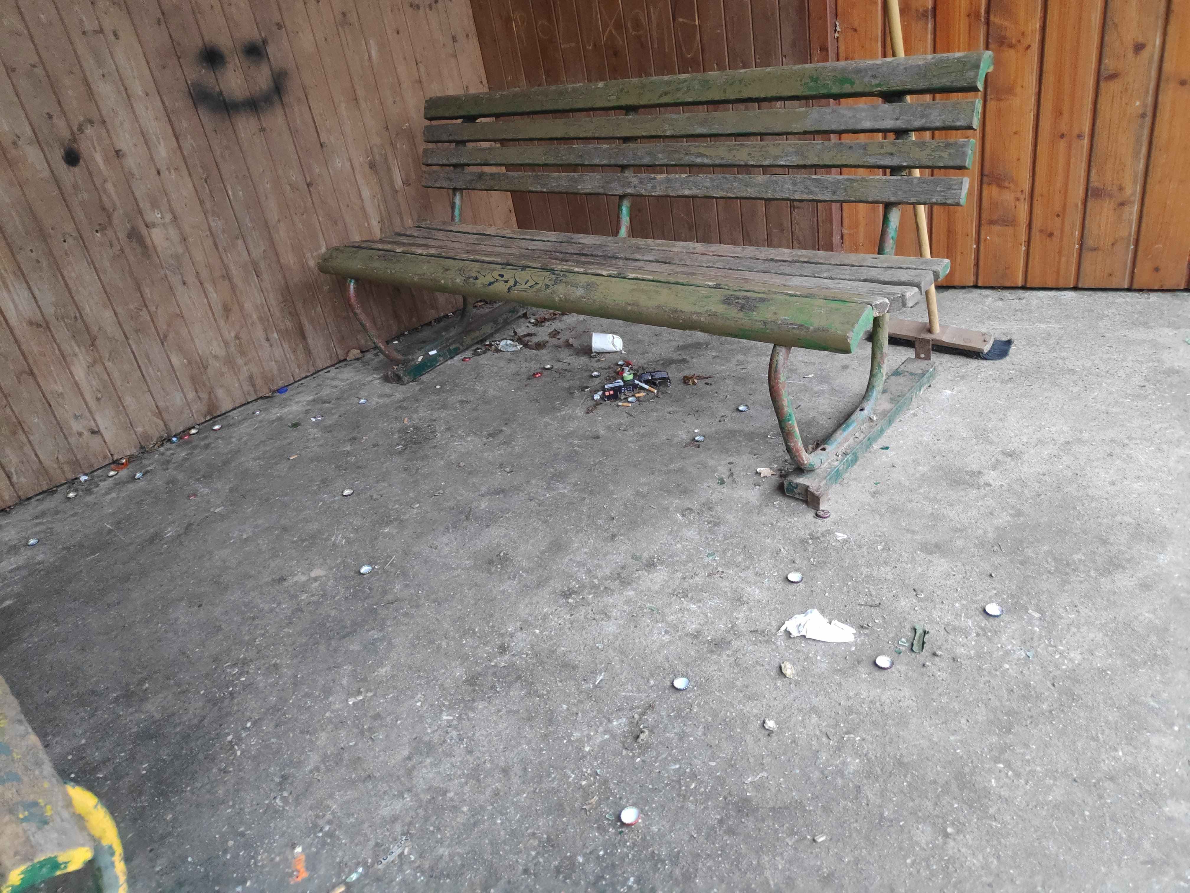 Die Veranstaltungstribüne war innen und außen mit Graffitischmierereien übersät. Wodka- und andere Glasflaschen lagen teilweise zerstört auf dem Boden verteilt. Der Strahler der Notbeleuchtung wurde umgedreht und halb abgerissen. Die Klappe der Beleuchtungsanlage war aufgebrochen, Fastfoodverpackungen auf dem gesamten Gelände verstreut. Sogar ein Straßenbegrenzungspfosten wurde aufgefunden. Da sich hier auch der Einstieg zum Blies-Grenz-Weg befindet, wirft es kein gutes Licht auf unsere Gemeinde. Für Hunde und spielende Kinder ist es zudem eine enorme Gefahr.