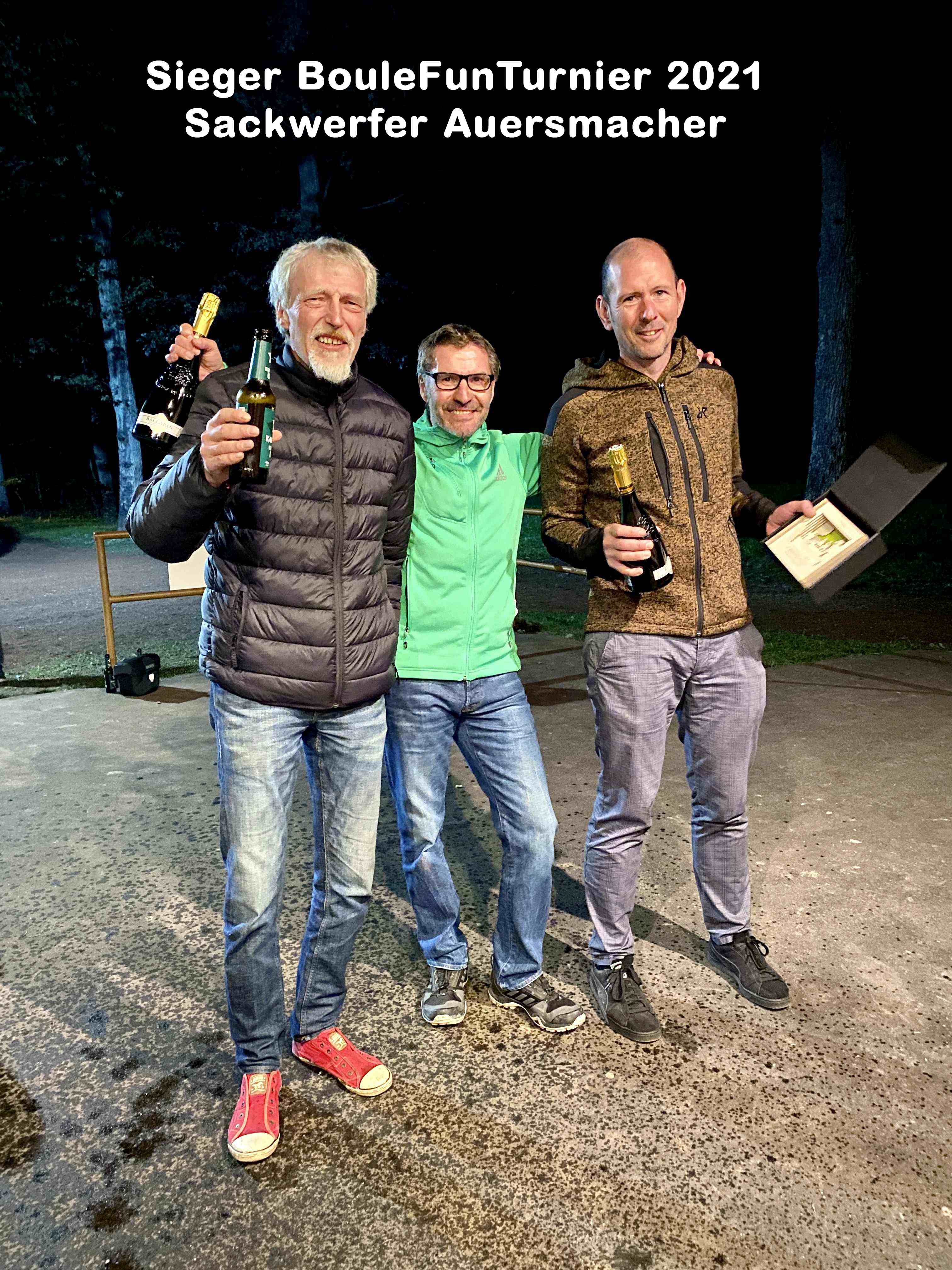 Bei der anschließenden Preisverleihung, bei der alle Teilnehmer bedacht wurden, ließen die Sackwerfer die anderen Turnierteilnehmer noch eine Sektdusche nehmen.