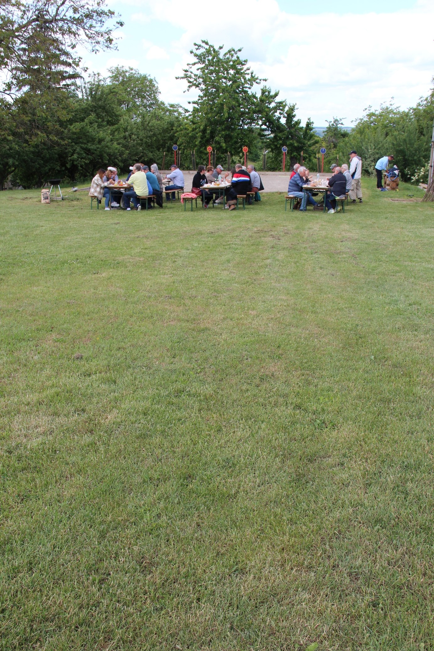 Dieses Jahr waren wir zum "Speckfescht-Turnier" eingeladen. Nach herzlichem Empfang und den Begrüßungsreden der Vereinspräsidenten Dominique Glad und Peter Bopp, wurden erst einmal den vorbereiteten Speisen und Getränken zugesprochen. Neben "Erbsesupp mit Saucisse" gab es Würste vom Grill so wie den legendären Speck, den man an einem Stock selbst über offenem Feuer braten konnte.