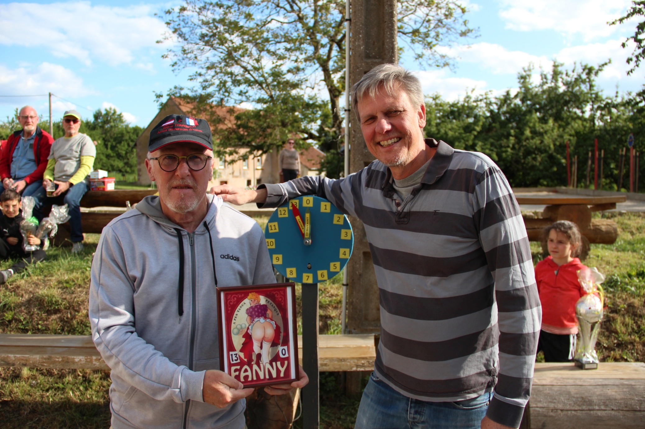 Turnier-Sieger wurde wie im Vorjahr, Sylvain Haritonidis, 2. Denis Kessler und 3. Patrice Caniffi. Insider wissen, alles Spieler der Boule KG Sitterswald. Eine tolle Geste der Gewinner, sie überließen ihre Pokale den beiden Kids, die sich rießig freuten.